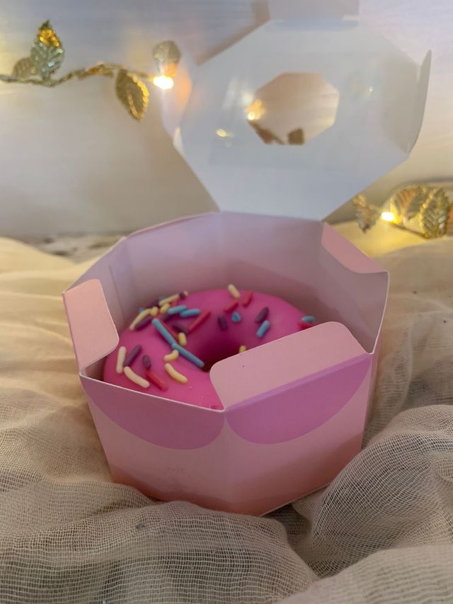 Bombón de quemador, con aroma a donut de fresa. Peso de 60gr. Para aromatizar en el quemador