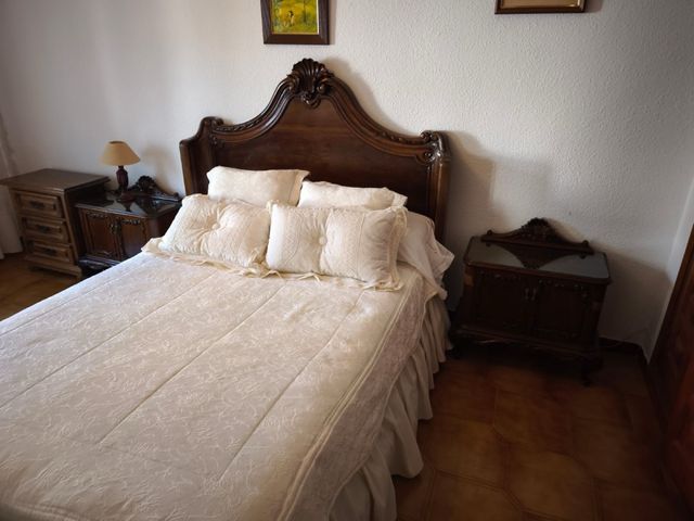 Dormitorio antiguo: Cama y mesitas