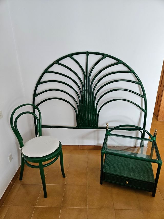 Detalles del productoOriginal cabecero mesita y silla de ratán lacado en verde para cama de 150 a 160 cm Medidas del producto