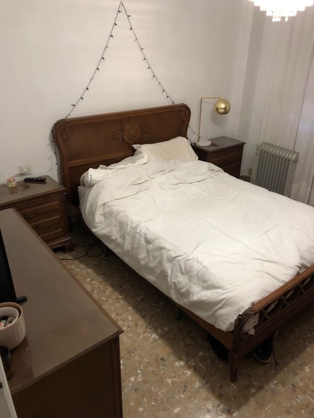 Detalles del productoConjunto de dormitorio de madera con detalles tallados.