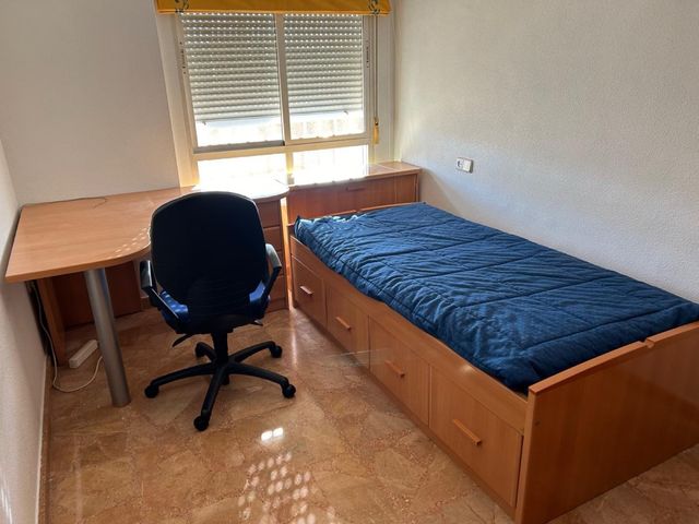 Detalles del productoDormitorio infantil completo. Incluye cama con colchón (90cm), escritorio con signos de desgaste (144x120x70 cm), un zapatero (90x70x34 cm) y una silla de escritorio