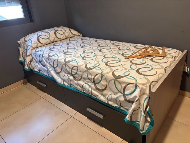 Se vende dormitorio juvenil en buen estado. Incluye cama con cajones y cabecero. - Cama con dos amplios cajones. - Cabecero a juego. - Diseño moderno y funcional.