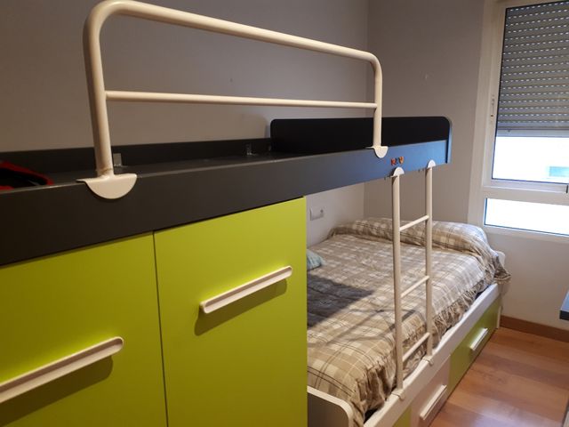 Detalles del productoDormitorio infantil compuesto por litera y armario. Se vende sin colchón.