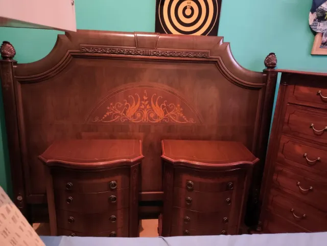 Detalles del productoConjunto de dormitorio de madera maciza con marquetería.