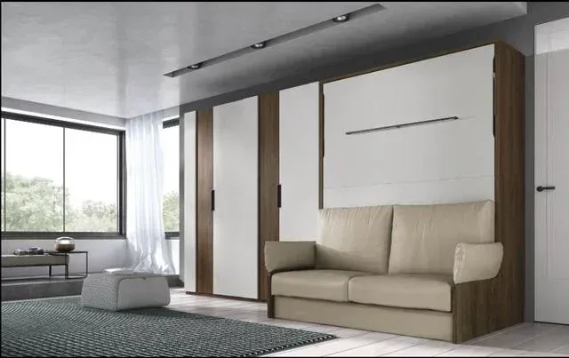 Cama abatible vertical con sofá autoportante altura 220, incremento conector doble cargador USB.