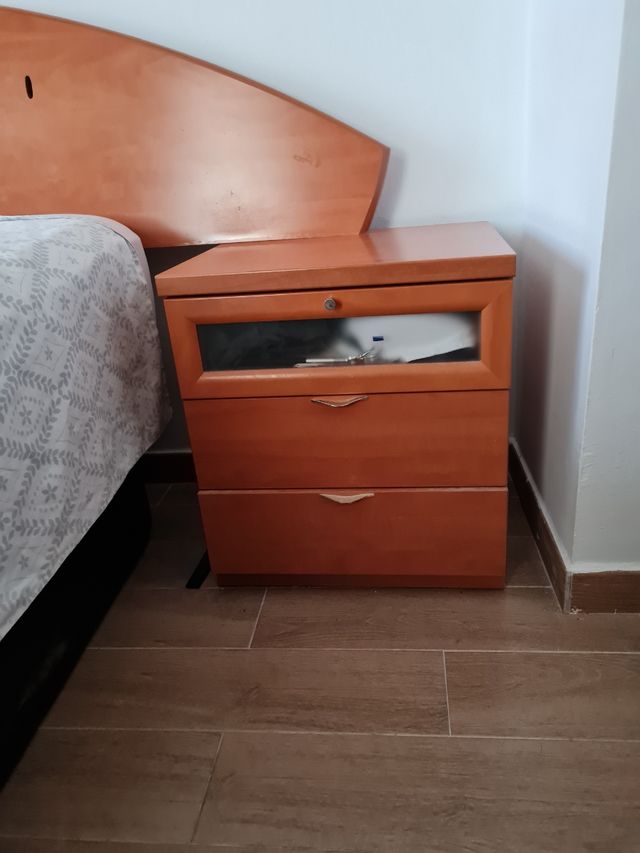 Detalles del productosolo tiene una rotura en la mesita de noche por detrás..Tendrían que venir para recogerlo...Son 2 cómodas, 2 mesitas de noche y el cabecero .. Medidas del producto