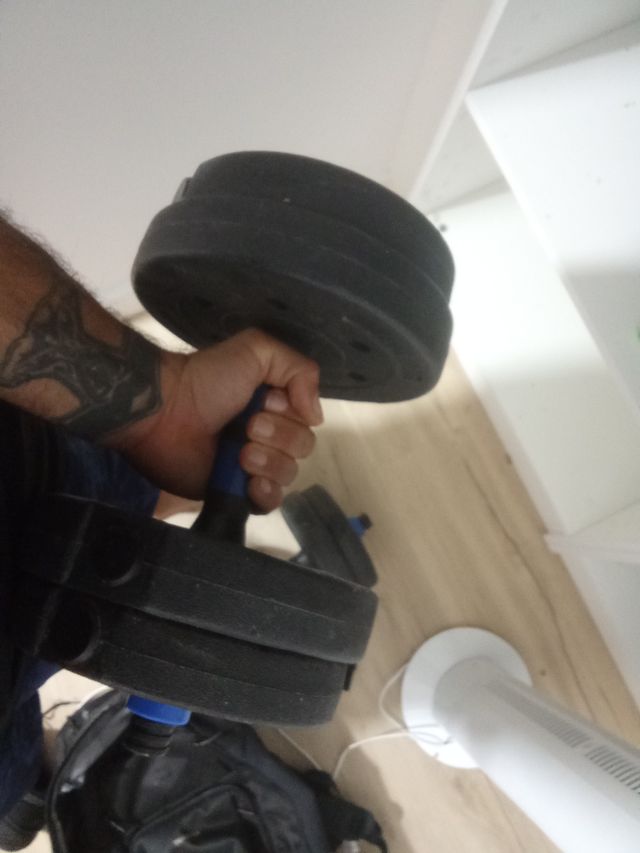 Se venden dos mancuernas ajustables, perfectas para entrenar en casa.acepto en vez de dinero,para fumar - Pesos intercambiables. - Mango ergonómico.