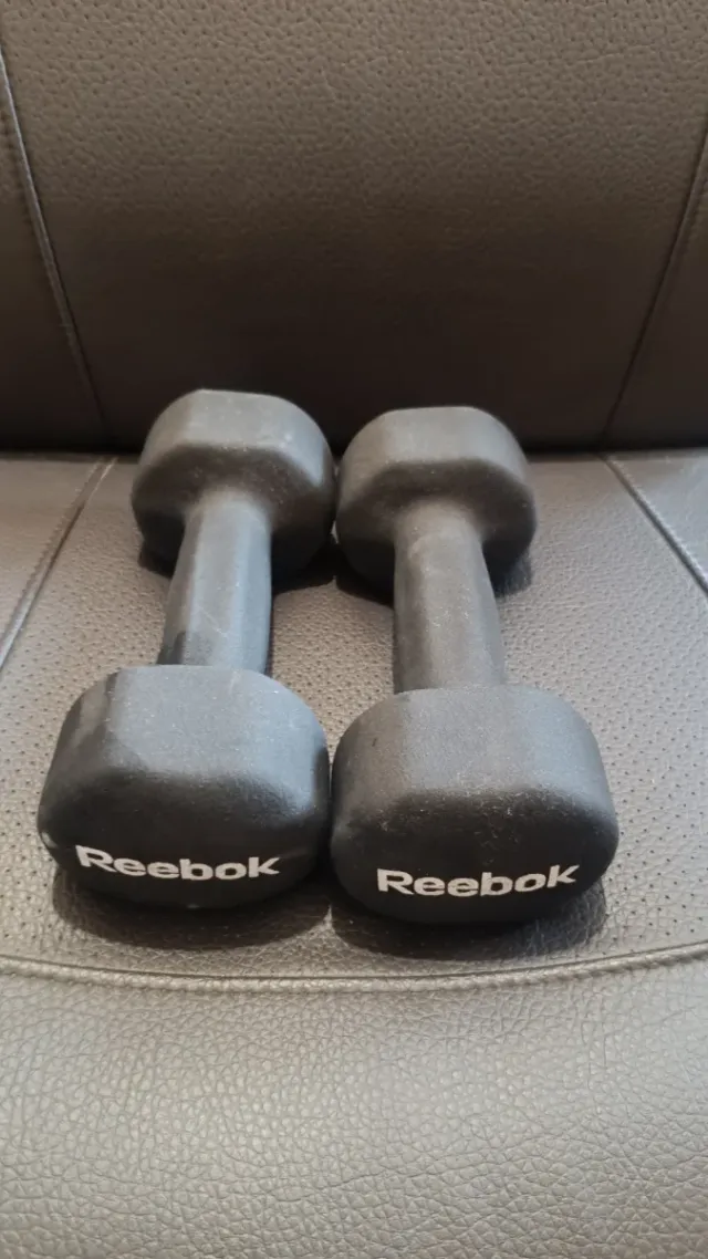Detalles del productoPar de mancuernas Reebok de 5 kg cada una. Ideales para entrenamientos en casa.