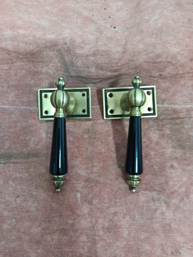 DOS MANIVELAS TIRADORES PUERTAS BRONCE Y BAQUELITA