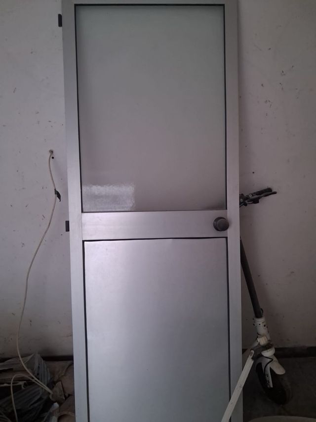 Puerta de aluminio con diseño moderno y cristal. Marco de aluminio resistente. Mide 2,06x75,5