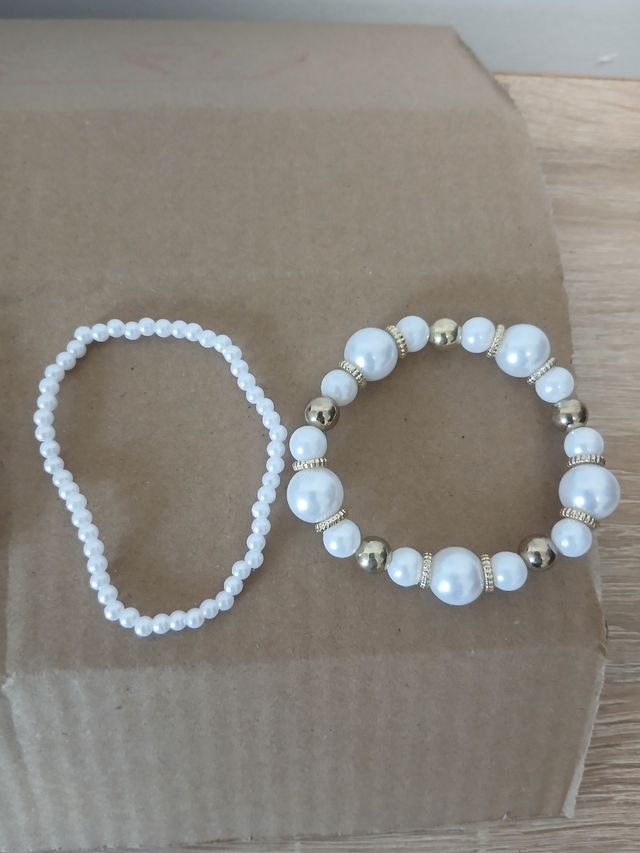 Conjunto de dos pulseras, una más fina y otra con cuentas más grandes.