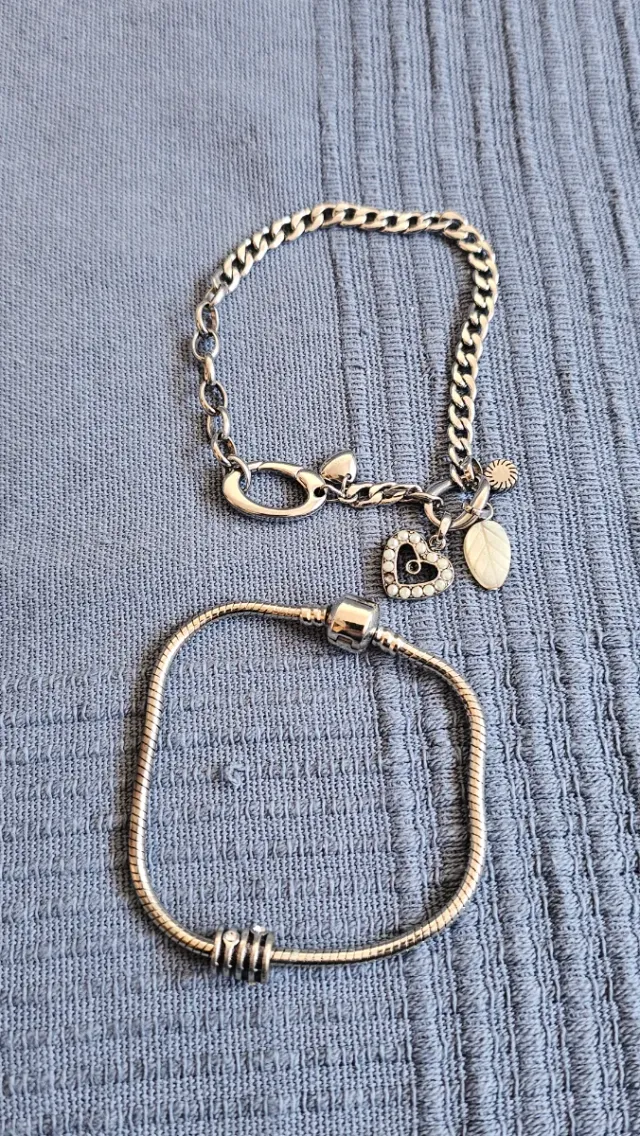 Dos pulseras plateadas Fossil y otra (no Pandora)