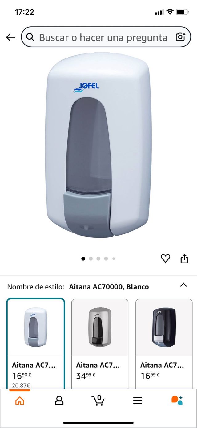 Detalles del productodosificador de jabon Jofel - Dosificador de Jabón Líquido para Pared, Recargable con Capacidad para 0.9L, Dispensador Jabón Baño Rellenable, Válvula Anticorrosión y Antigoteo, Carcasa ABS, Aitana AC70000, Blanco