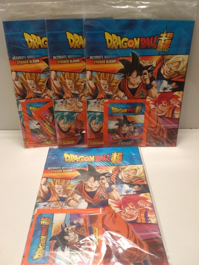 Detalles del productoÁlbum de cromos de Dragon Ball Super.hay cuatro precio por unidad con dos sobres el su interior y un poster.