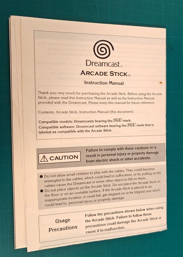 Detalles del productoVendo manual de instrucciones para Arcade Stick de Dreamcast. El manual está en buen estado aunque ha tomado el sol por algunas zonas. Lo típico de un papel de hace +20 años.