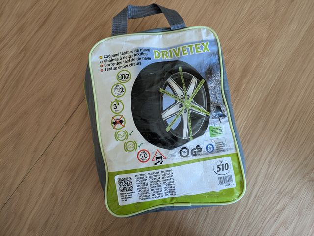Cadenas de tela DRIVETEX-510 para nieve sin usar, nuevas. Las medidas de rueda para las que se adapta se puede ver en una imagen.
