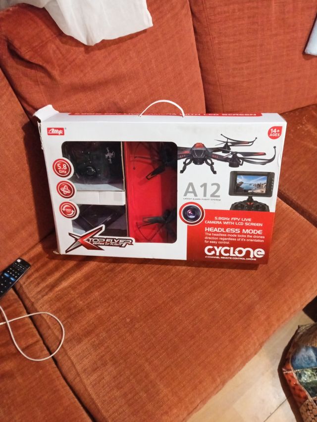 Detalles del productoDrone Cyclone A12 en perfecto estado. Incluye cámara con pantalla LCD para visión en tiempo real. - Sistema de vuelo 6-AXIS. - Modo sin cabeza. - Control remoto de 4 canales. - Frecuencia de 5.8GHz. Ideal para principiantes.