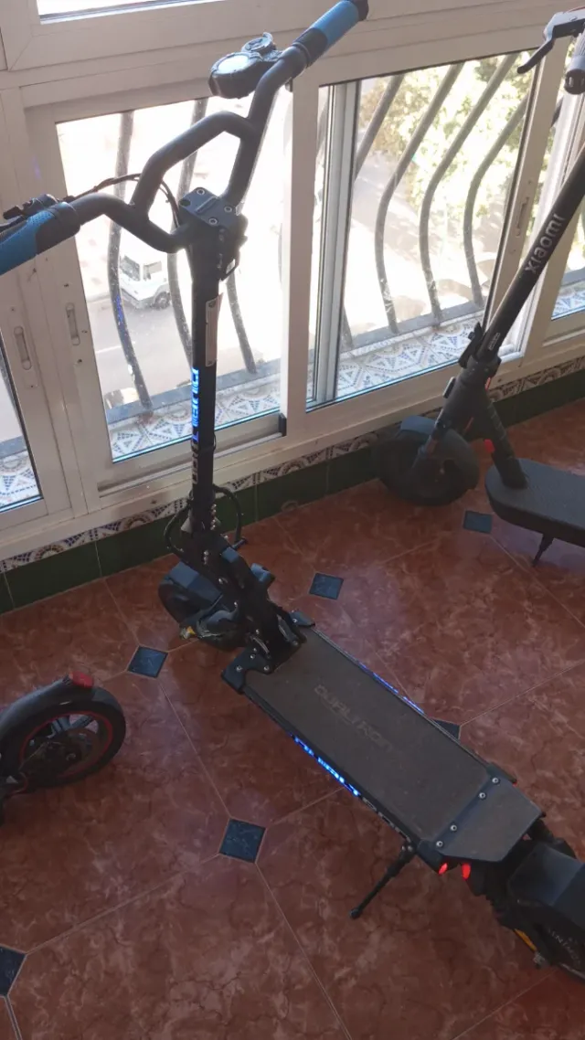 Patinete eléctrico Dualtron Mini. - Diseño deportivo. - Manillar con puños azules. - Plataforma con luces LED azules.