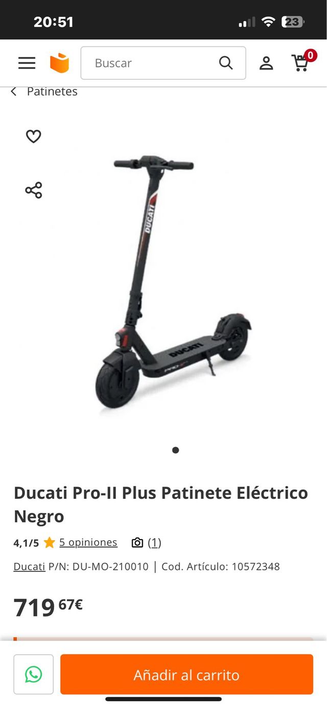 Detalles del productoPatinete eléctrico Ducati Pro-II Plus en perfecto estado. Apenas usado.