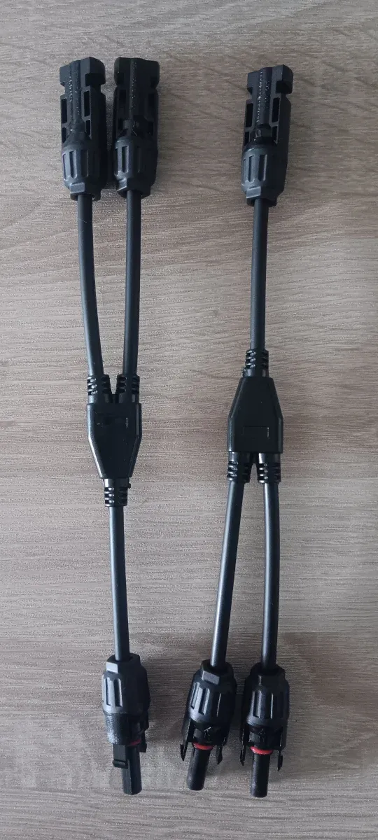 Conector duplicador MC4 para paneles solares. Permite conectar dos paneles en paralelo. - Conector tipo Y. - Color negro.