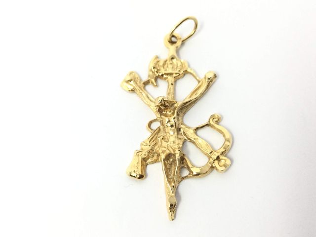 Detalles joya: Cristo cruz en ballesta y pistola oro amarillo