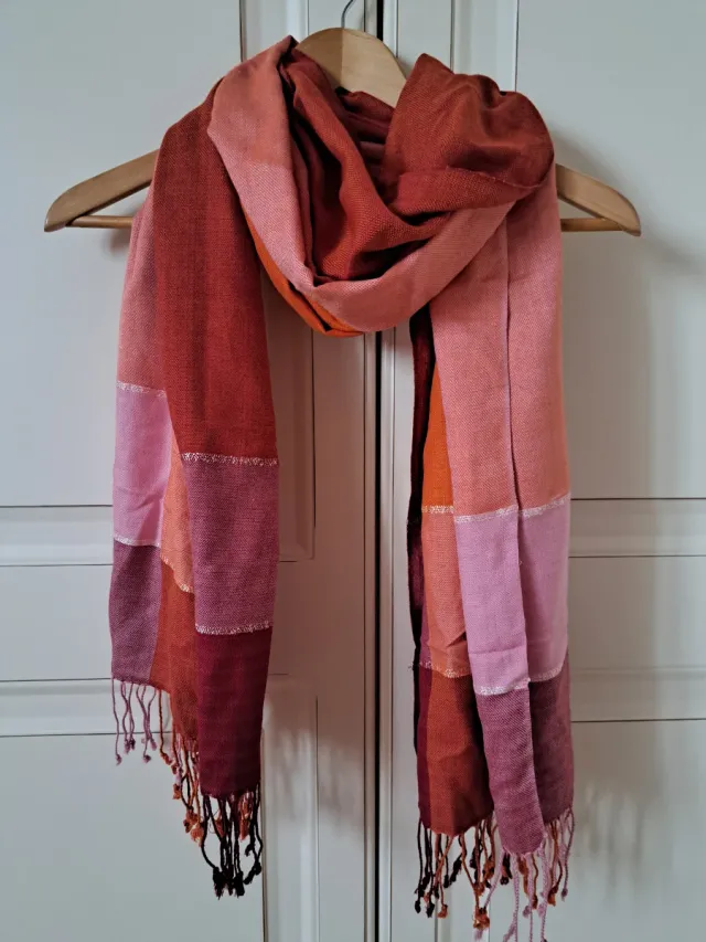 Echarpe tonos rojos y rosas