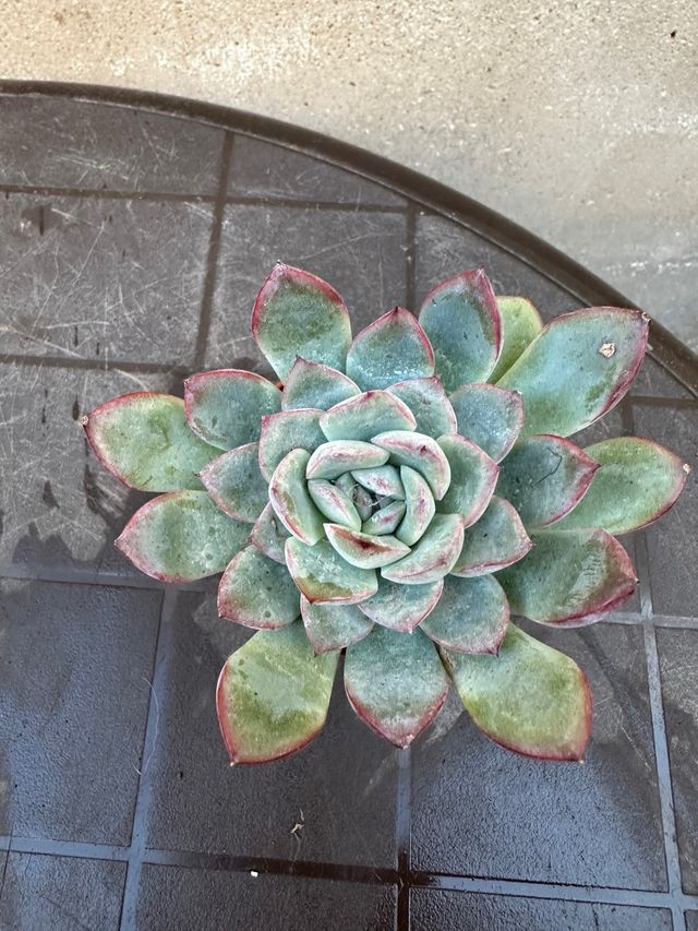 Planta suculenta Echeveria Minuet. - Hojas de color verde azulado con bordes rojizos. - Forma roseta compacta.