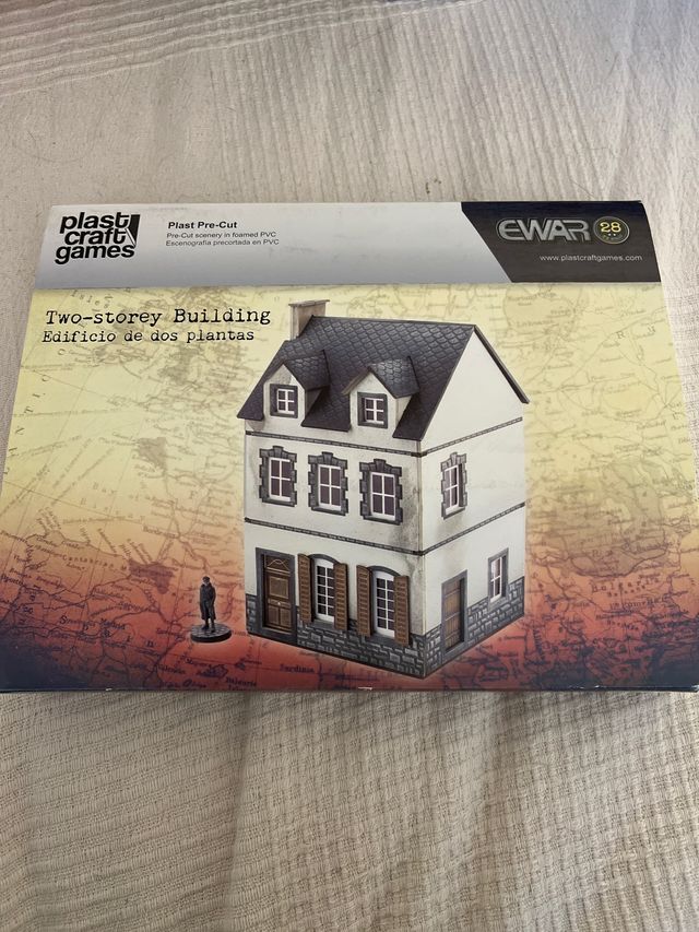Detalles del productoEscenografía de edificio de dos plantas, precortada en PVC, ideal para juegos de guerra como Bolt Action.