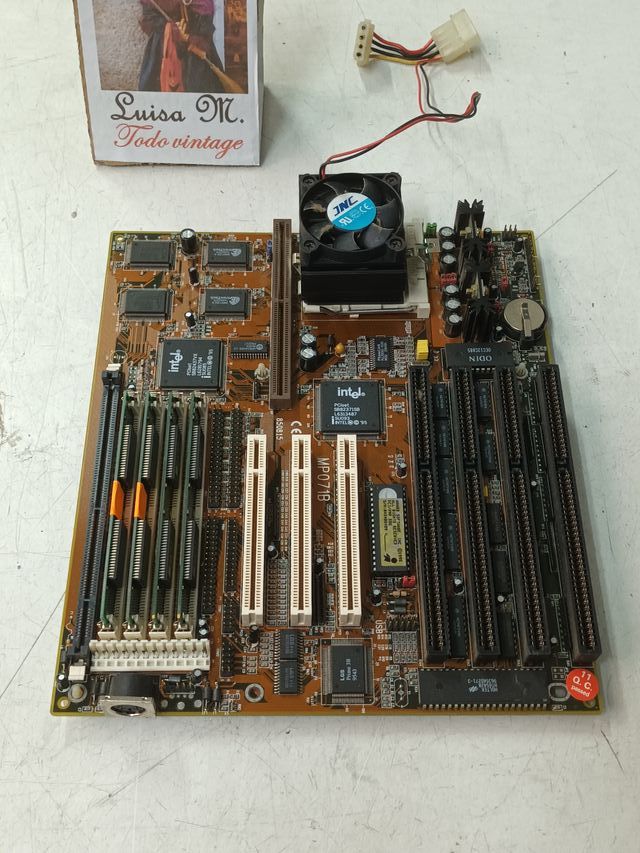 Detalles del productoPLACA BASE DE PC, Edom/WinTech MP071B, tiene un procesador pentium MMX 166mhz, funcionando tal como se ve en las fotos, ( la placa ha sido desmontada de un pc y conectada a corriente y comprobada que enciende y da video, no esta reparada ni se le ha revisado nada mas, solamente lo que se se ve en las fotos) VENDO LA PLACA, EL PROCESADOR, EL DISIPADOR, LA MEMORIA RAM QUE TIENE PUESTA, ref. n-32