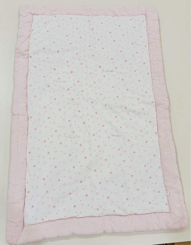 Detalles del productoEdredón reversible ideal para capazo o mini-cuna con un bonito estampado de estrellas en tonos rosas y grises sobre fondo blanco. Marca Cotton Juice de El Corte Inglés