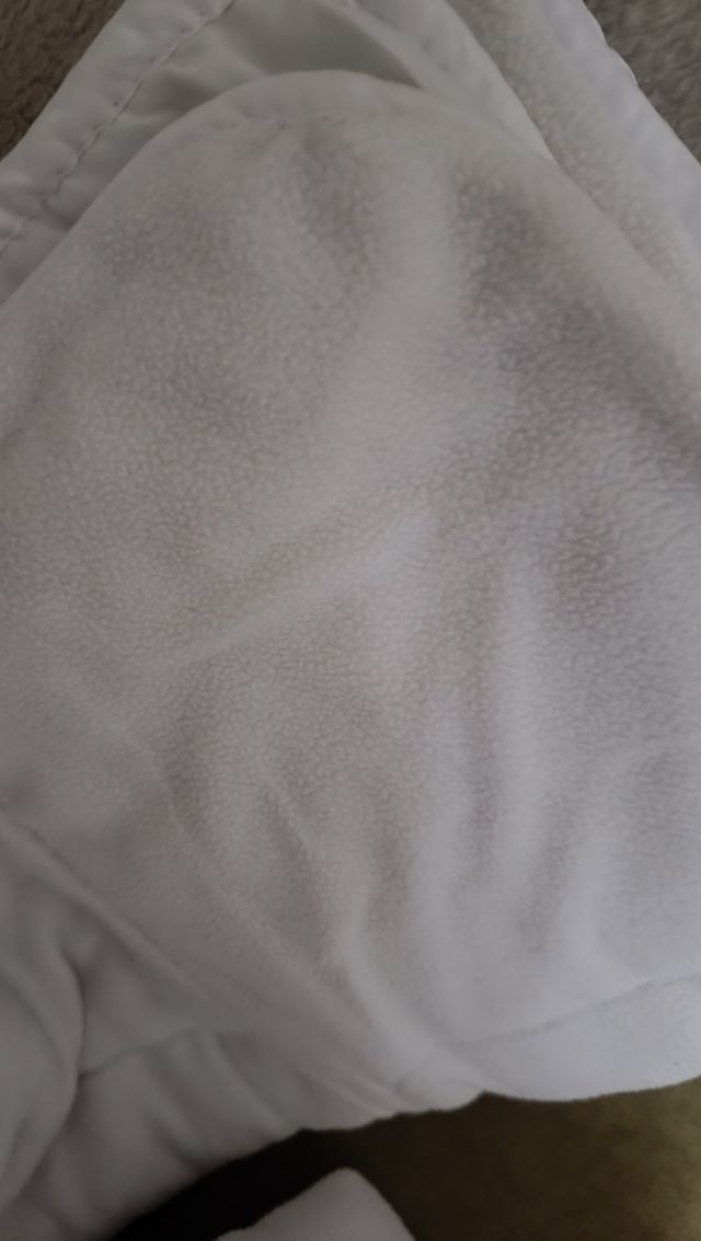 Por un lado tela como de felpa, no pesa y es abrigadito. Medidas del producto