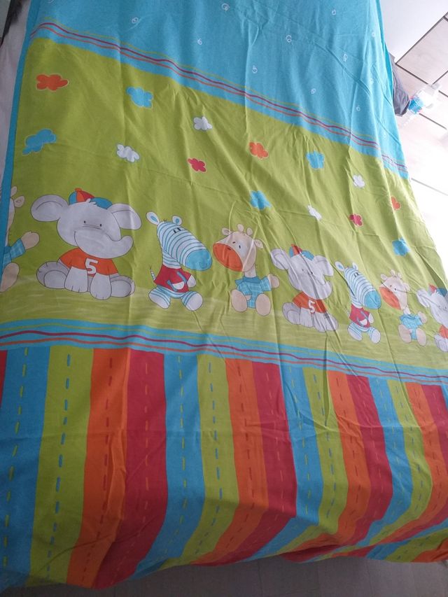 funda nórdica niños. para cama de 1'35. valdría para cama de 90. incluye sabana bajara y funda de almohada. medida de la funda. ancho 1'50 y largo 2 metros.