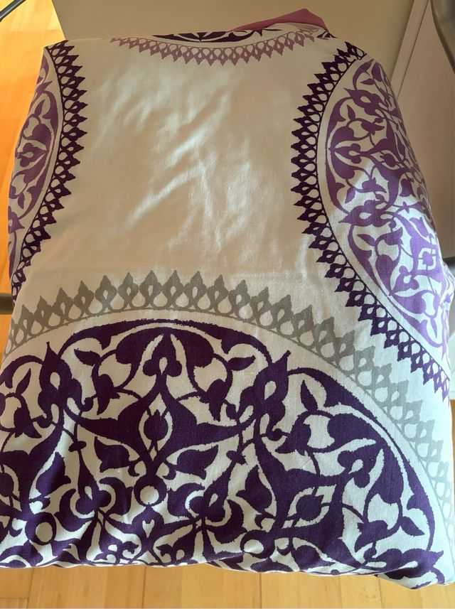 Detalles del productoEdredon nórdico de El Corte Inglés con el relleno blanco de 150g para una cama de 80-90cm. Funda morada y blanca está muy bien, sin manchas, marcas ni roturas. Medidas 220x150cm. Las dos piezas juntas 59€.