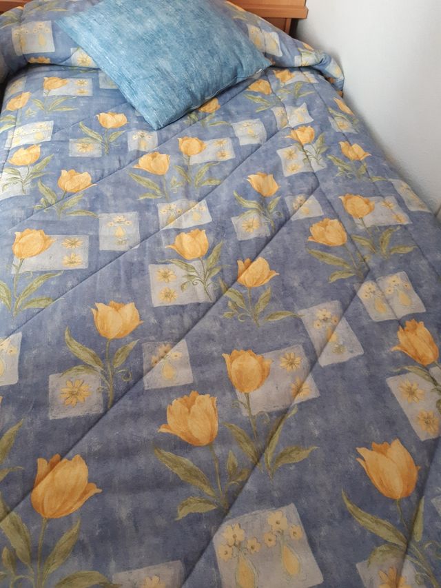 Edredón con elástico. Medidas funda cojín: 42 cm x 42 cm. No hago envíos. Sólo entrego en mano en Málaga (zona hospital Carlos Haya)