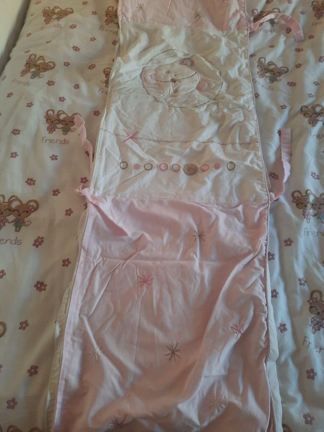 edredón y chichonera más relleno en tonos rosa