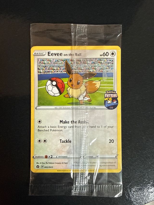 Detalles del productoCarta de Pokémon Eevee on the Ball sellada, exclusiva del Reino Unido. Puede parecer que hay alguna doblez pero es el plástico, la carta está perfecta. Se enviará muy protegida.