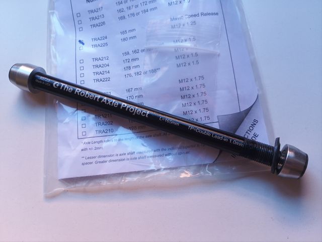Detalles del productoEje pasante de la marca Robert Axle Project, modelo TRA210 válido para montar la Orbea Orca en rodillos Zycle y rodillos convencionales.