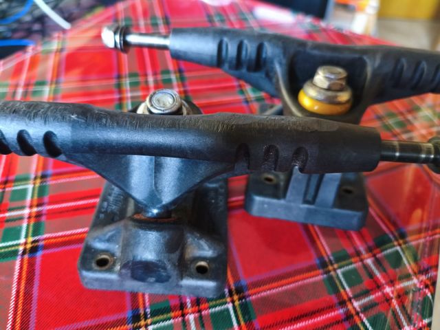 En la epoca se conocian con los ejes de carbono, por su bajo peso y aspecto, en realidad el material es el mismo que el de la base, composite. Uno de los plasticos mas resistentes y a la vez lijeros.