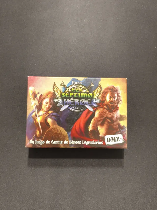 Juego de cartas El Séptimo Héroe. De 3 a 5 jugadores con partidas de 15 minutos. Incluye 24 cartas en blanco para crear nuevos héroes.