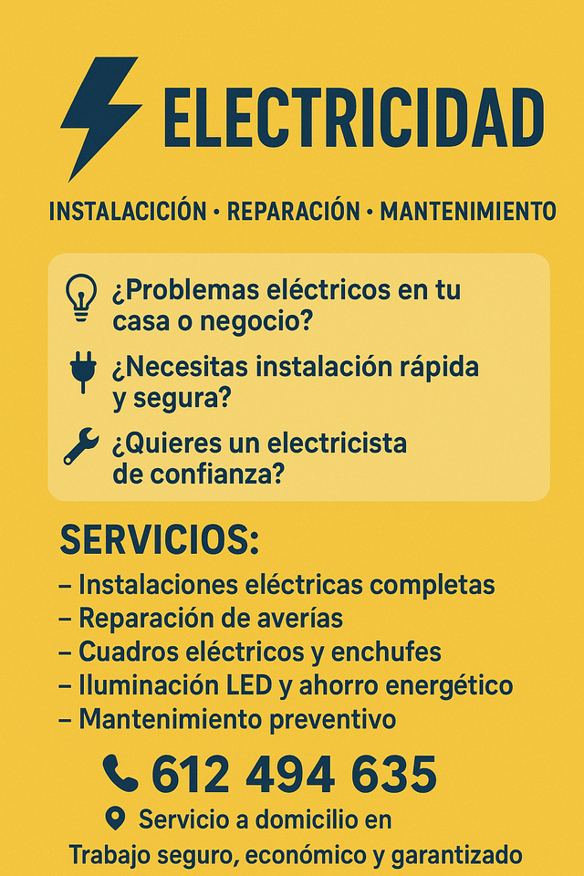 Detalles del productoOfrezco servicios eléctricos para viviendas, locales y comunidades:
