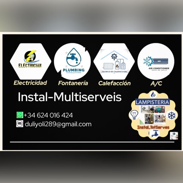 Detalles del productoTrabajamos por servicios como autónomo,hacemos todos tipos De instalaciones i reparación de averías:electricidad,fontaneria,calefacción,aire acondicionado,reparar neveras,pescinas,suelo radiante,calderas(tel:624016424)