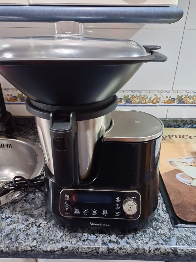 Detalles del productoRobot cocina Moulinex clickchef,3,6 litros,1400W,32 funciones, bascula de cocina integrada, olla a vapor, batidora.Producto en muy buen estado,piezas sin usar Medidas del producto