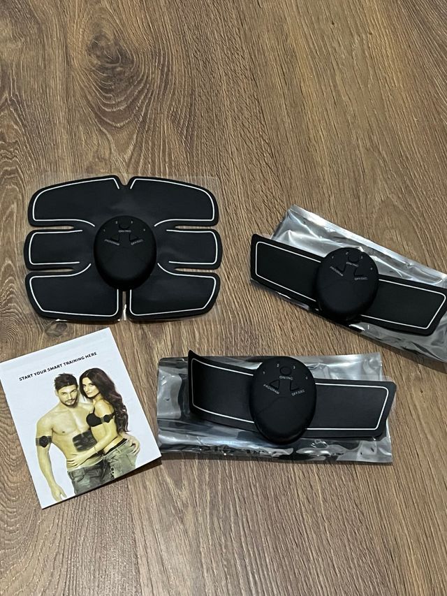 Detalles del productoSet de electroestimuladores musculares EMS para tonificar el cuerpo. Incluye almohadillas para diferentes zonas.