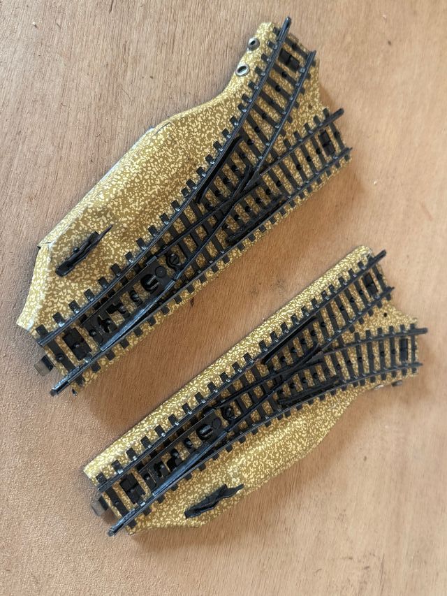 Detalles del productoPar de desvíos manuales para maquetas de trenes Electrotren. Par de desvíos originales Electrotren escala M (ref. 190-M).