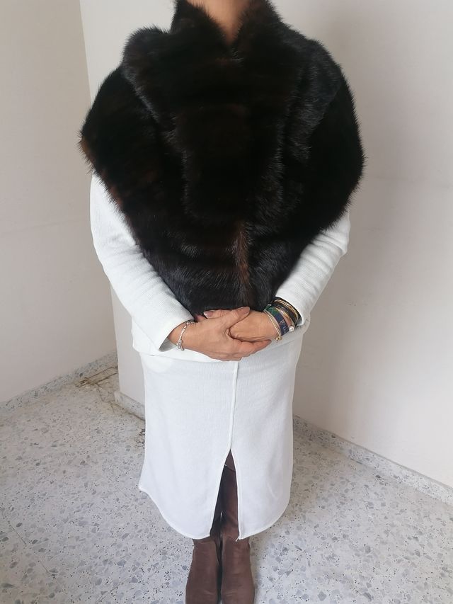 Elegante estola piel vintage negro/marrón