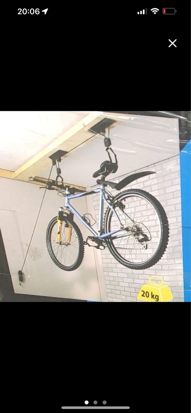 Detalles del productoSistema de elevación para guardar tu bicicleta en el techo. Ideal para optimizar el espacio en garajes o trasteros.