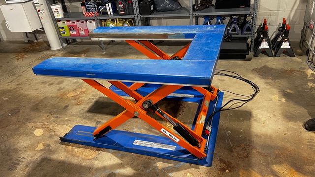 Detalles del productoPlataforma de elevación hidráulica de uso industrial. Ideal para talleres o almacenes.