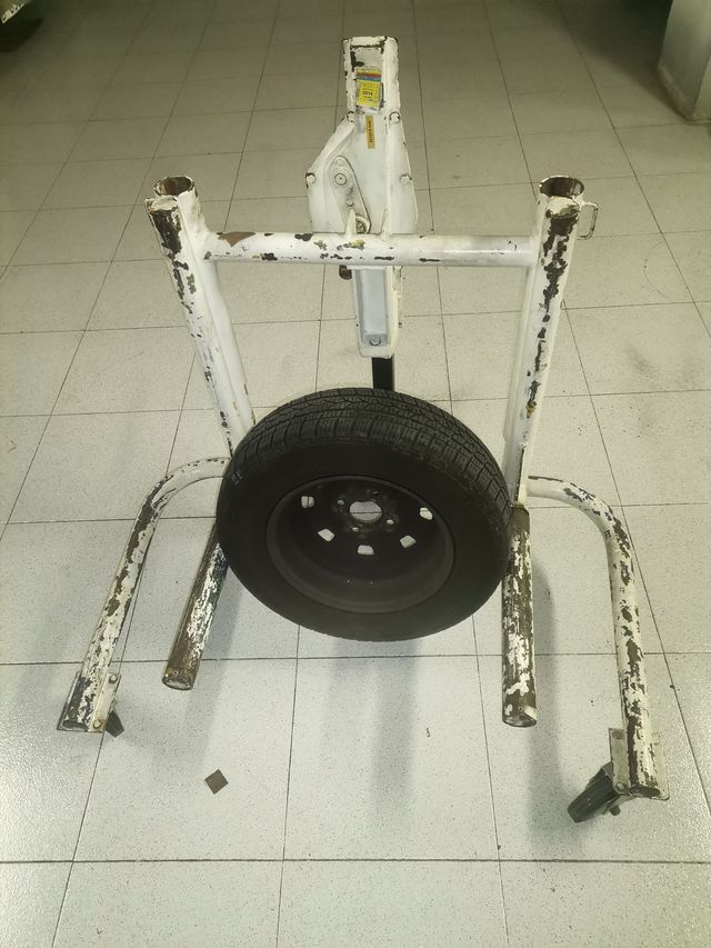 Detalles del productoElevador mecànico en funcionamiento de ruedas de Tractor o Camión. Distància entre rodillos 60cms, altura màxima de trabajo 34cms desde el plano de trabajo. Ruedas giratorias nuevas. Capacidad de carga hasta 300kg. Posibilidad de entrega en zona Baix Llobregat. Medidas del producto