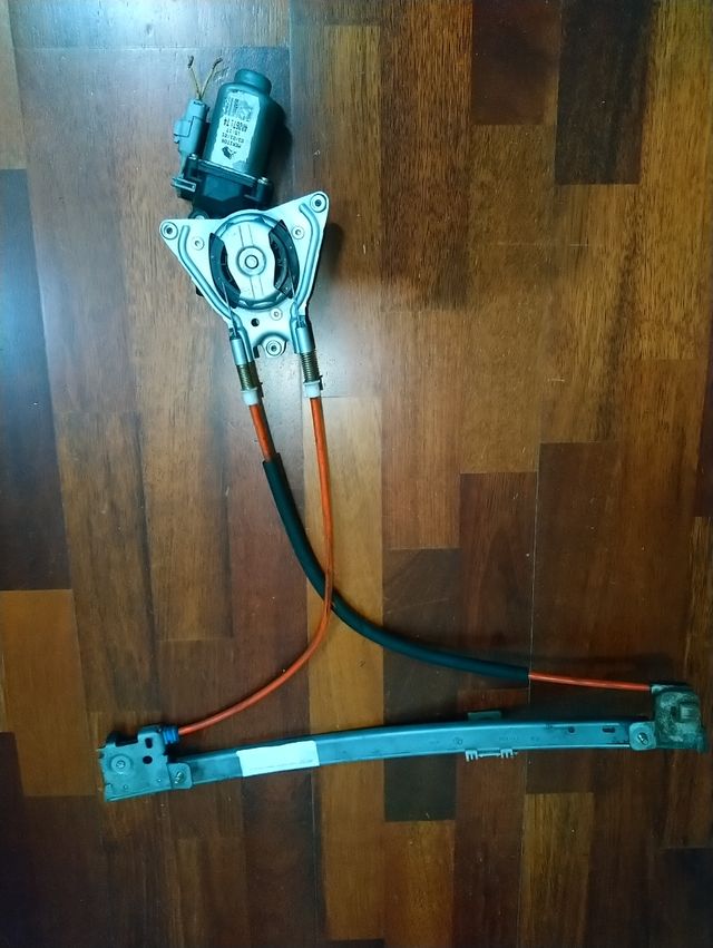 mecanismo completo de elevalunas izquierdo de Peugeot 106 año 2005. creo que tambien vale para Citroen saxo. se puede probar e indico como montarlo.