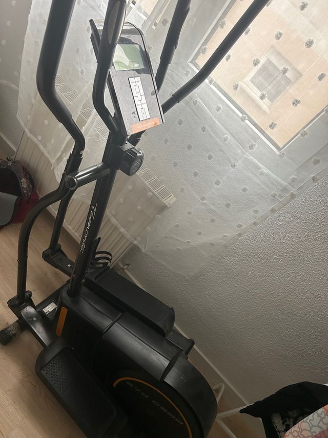 Elíptica - Diseño moderno en color negro y detalles naranjas. - Pantalla digital con información de entrenamiento. - Pedales amplios y cómodos.
